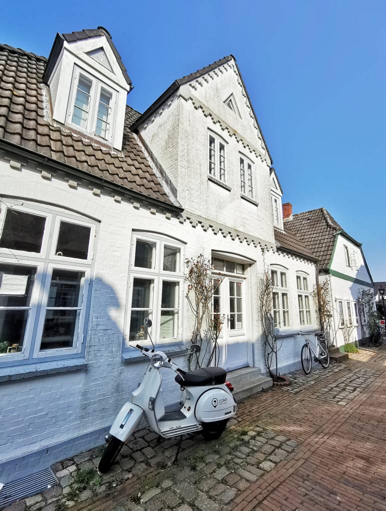 The accommodation is located in the island’s main town Wyk. It’s tucked away in a quiet side street but only a short walk away from the main street with all its shops, restaurants and the seafront.